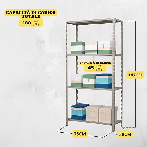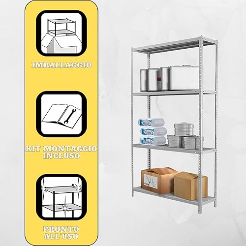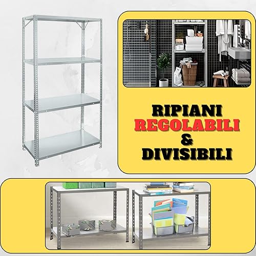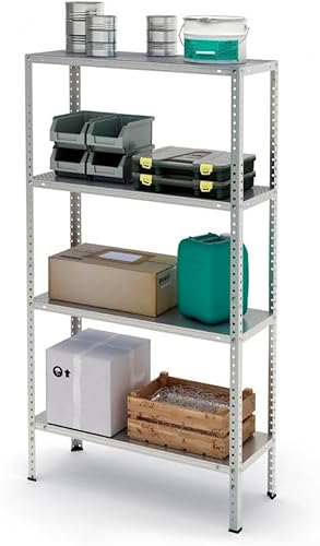 Scaffale Metallo 4 Ripiani Lamiera Zincata Dimensioni 147 x 30 x 75 cm Garage Dispensa Officina