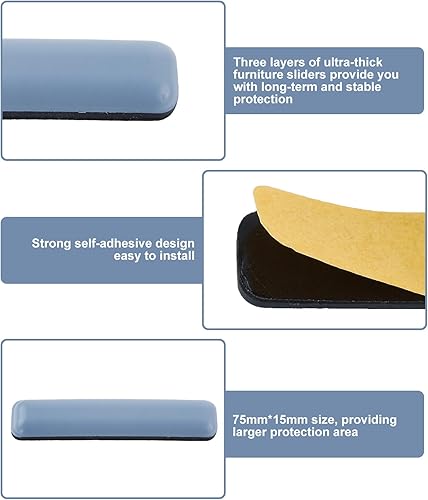 12 Pezzi Scivoli per Mobili, 75 x 15 mm Piedini per Mobili in Teflon, Autoadesivi Cursori di Mobili per Sedie, Tavoli, Divani e Letti