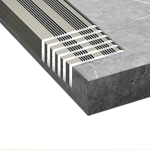 HAEKEBC 6 Pezzi Profilo Angolare per Gradini in Alluminio 120cm, Profilo per Bordi Scale per Gradini Antiscivolo, Protezione per Porte di Piscine(Light Grey,120cm/48in)