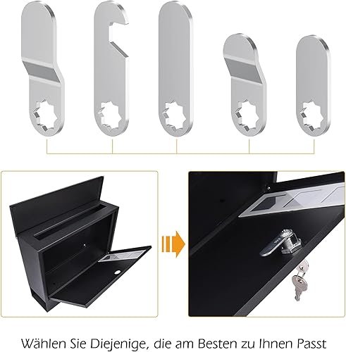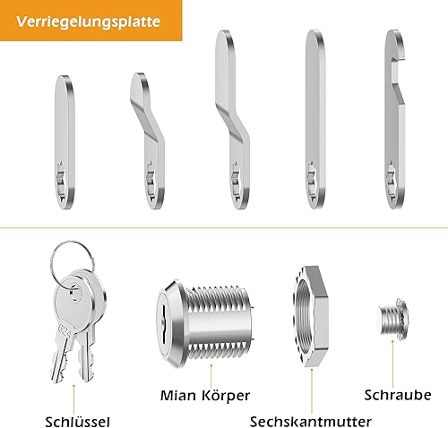 Serratura per cassetta delle lettere, 16 mm, con 5 diverse piastre di serratura, serratura per mobili, serratura del mandrino, serratura a leva per cassette delle lettere, ante dell'armadio