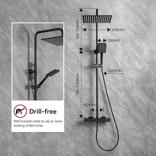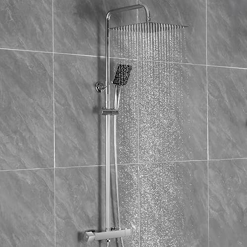 Auralum Colonna Doccia Termostatica Cromo con Miscelatore, Set Completo Doccia a Pioggia 30cm in Acciaio Inox, Asta Regolabile 88-124cm e Doccetta con 6 modalità d'uso