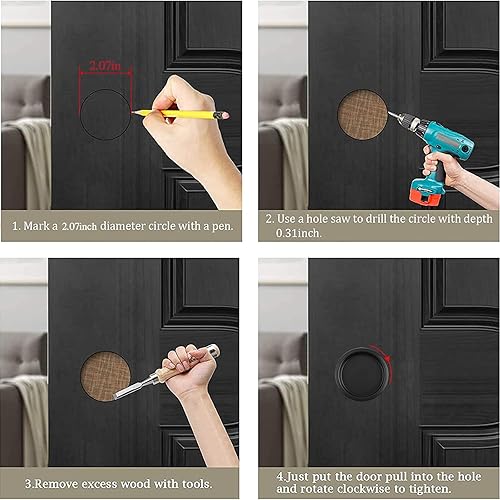 MOROBOR Confezione da 4 tiranti per porte e porte, in acciaio tondo scorrevole, maniglie da incasso per armadio da cucina, maniglia invisibile, nero