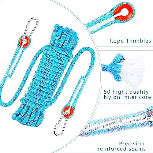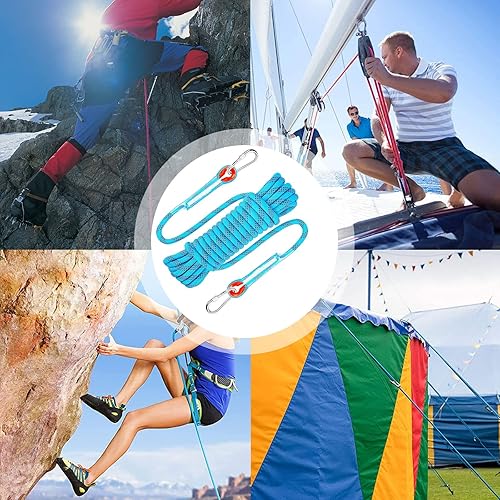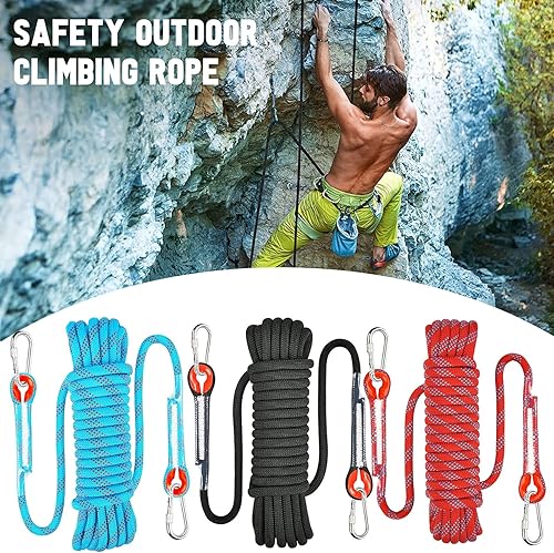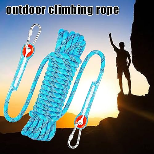 10M Corda per Arrampicata su Roccia, Corda OutdoorCorda con 2 Moschettone, Multifunzionale in Nylon per attività All'aperto e in Campeggio Fire Rescue Paracadute Corda,Diametro 8 mm