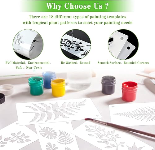 18 Pezzi Stencil Foglie Stencil Modello Pianta Tropicale Per Pittura Stencil Foglia Riutilizzabile Lavabile Grande Felce Palma Modello Botanico Stencil Per Decorazione Murale Artigianato Artistico