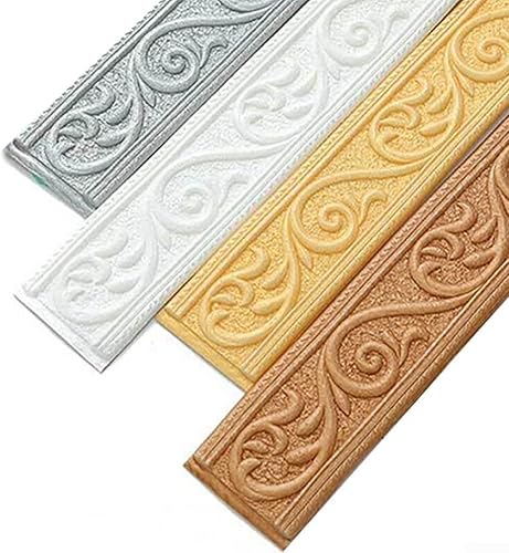 Striscia adesiva per bordo della parete, linea di vita, linea di battiscopa, autoadesiva, bordo in schiuma, impermeabile, 3D, goffrato, autoadesivo, 230 x 5 x 0,4 cm (argento e grigio)