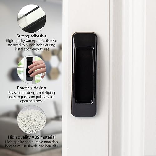 Maniglia Autoadesive della Porta Scorrevole 6 Pezzi,Maniglia Adesiva Armadio,Plastica Adesiva Manopole per Mobili Frigoriferi - Nero