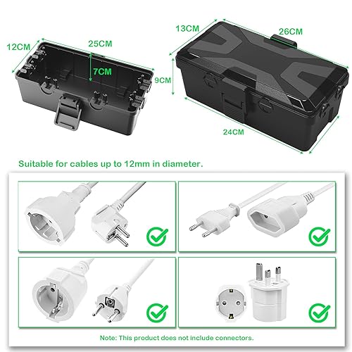 Scatola Stagna Elettrica da Esterno, Scatola Elettrica da Esterno, Scatola Porta Cavi Impermeabile IP55 impermeabile da esterno Protezione per Prese, Prolunghe, Cavi, Timer (23x12x10cm)