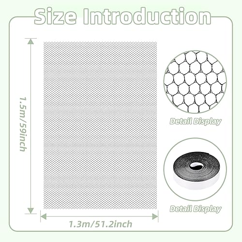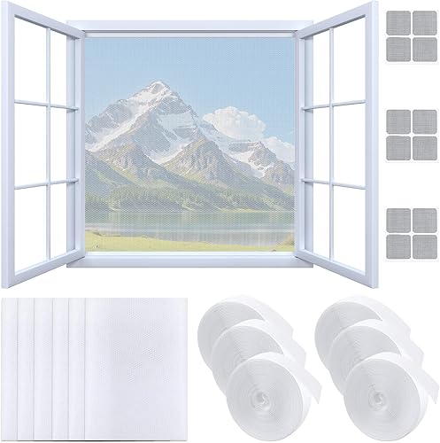 6 Pcs Zanzariera Finestra DIY, Tagliabile Senza Foratura, Zanzariera Adesiva con Toppa e Nastro Adesivo, Zanzariera Adesiva Ritagliabile 150x130cm (Nero)