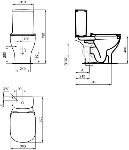 Ideal Standard - Tesi, Cassetta con batteria double flush, Scarico da 4.5/3 litri, Bianco seta