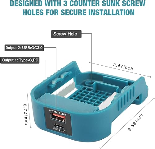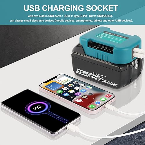 2 Pack Adattatore Batteria, Compatibile con Makita 18V Batteria agli ioni di litio Adattatore Caricatore Telefono USB Doppio con Ricarica Veloce Type-C (solo adattatore)