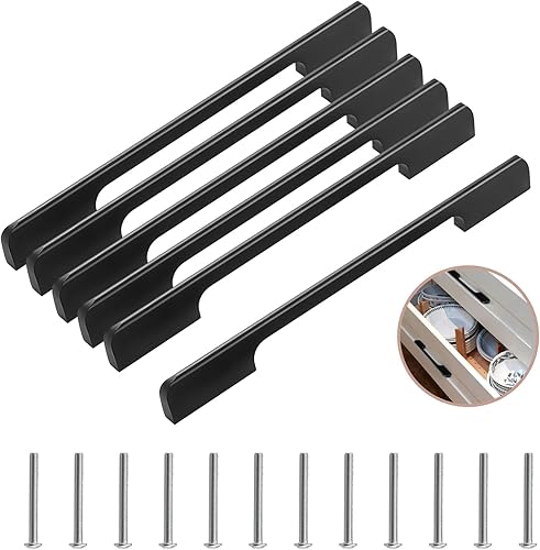 6 Pezzi Maniglie Cucina Distanza fori 160 mm, Maniglie per Mobili da Cucina Nero, Maniglia in Lega di Alluminio per Mobili da Cucina Decorazioni