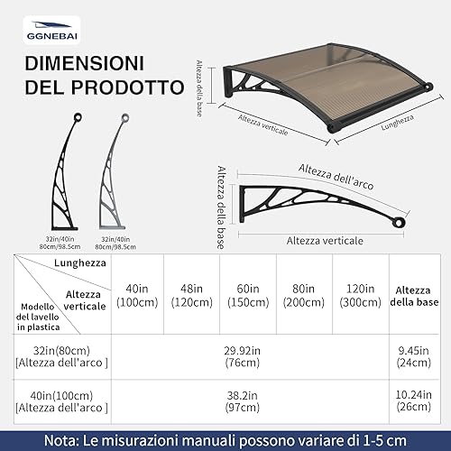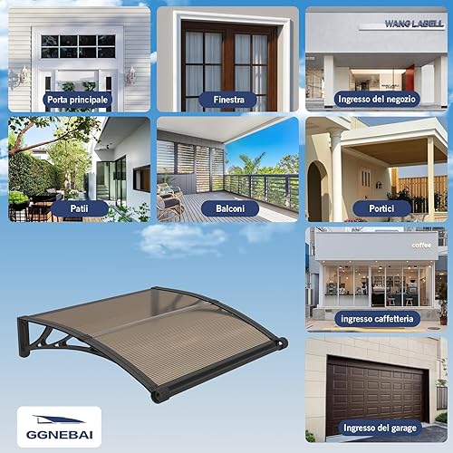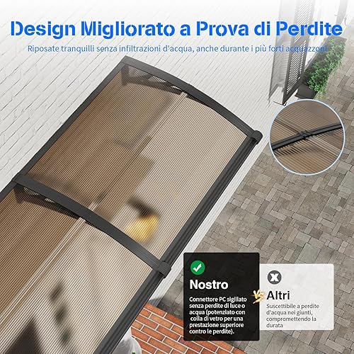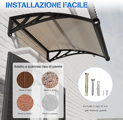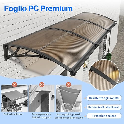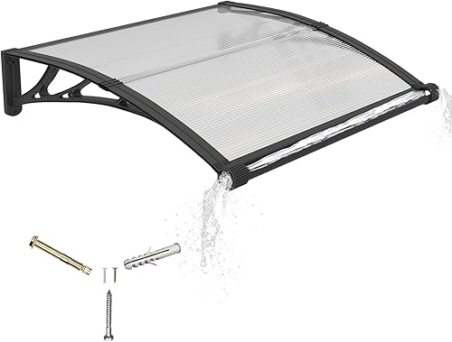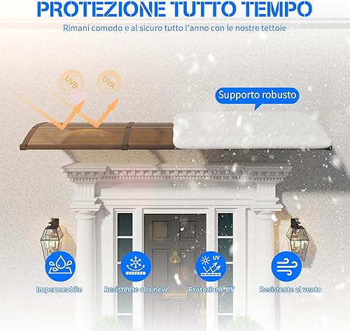 Pensilina da Esterno 80x100 cm in Policarbonato con Grondaia Integrata, Baldacchino Tettoia per Porta, Finestra e Veranda, con Protezione UV, Antipioggia e Antineve