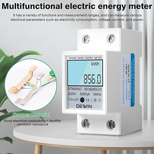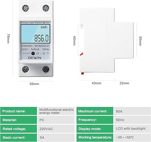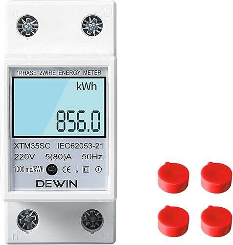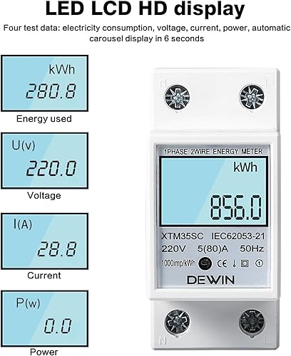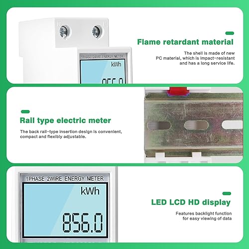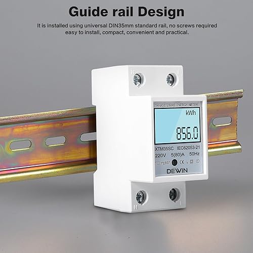 Misuratore Consumo Elettrico, AC 220V 5(80) A Contatore Kwh su Guida DIN Contatore di Energia Monofase a 2 Fili Wattmetro Contascatti Elettrico con Display LCD