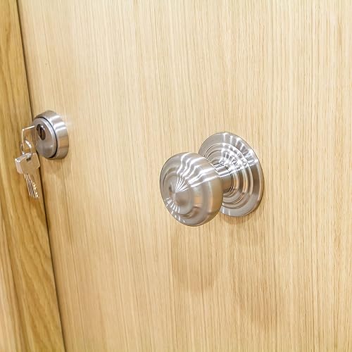 Amig - Pomello rotondo per porte esterne di ingresso | Maniglia per porta principale della casa | Diametro maniglia Ø70 mm | Ottone | Argento | Vite e dado di fissaggio inclusi