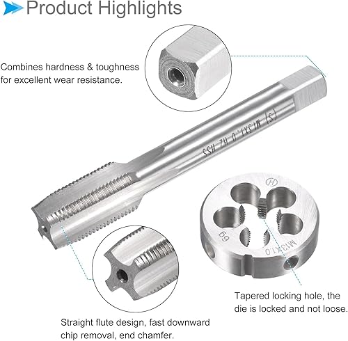 Set Rubinetti e Matrici, M13 x 1 Filettatura, Metrico Acciaio Alta Velocità Macchina Rubinetto per Vite & Kit Utensili per Stampi Tondi - (per Riparazione), 1 set