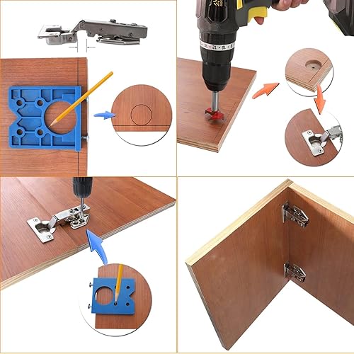 35 mm Dima per Cerniere a Scodellino, Punte Forstner per Legno, Dima per Fori, Set di Punte per Cerniera Nascoste, per Il Legno Mobilia Porta Cerniera Armadi Installazione