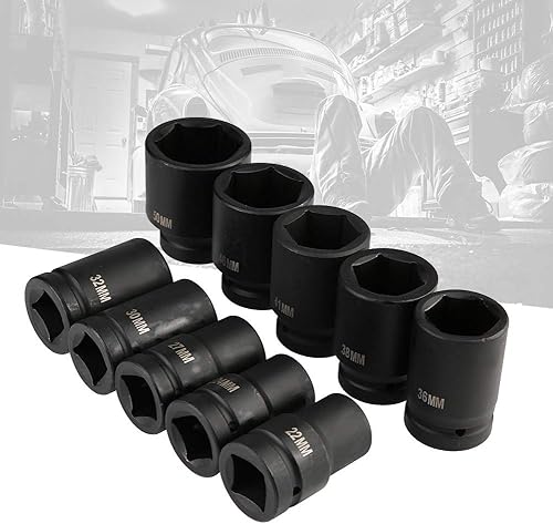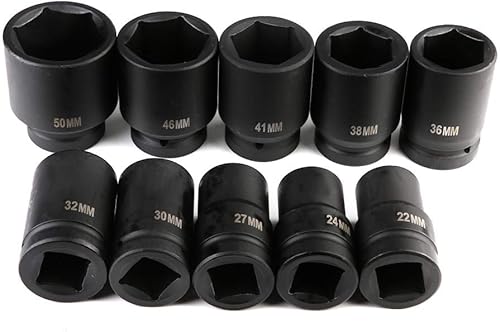10 pezzi 1 pollice Metric Deep Impact Socket Set in acciaio al cromo vanadio, 22 mm, 24 mm, 27 mm, 30 mm, 32 mm, 36 mm, 38 mm, 41 mm, 46 mm, 50 mm
