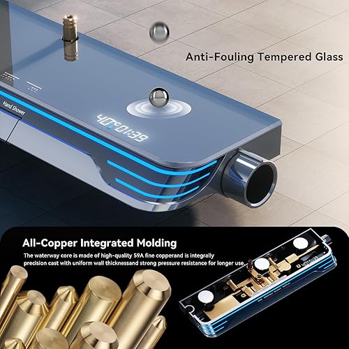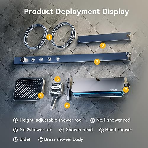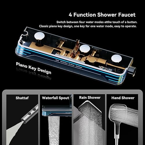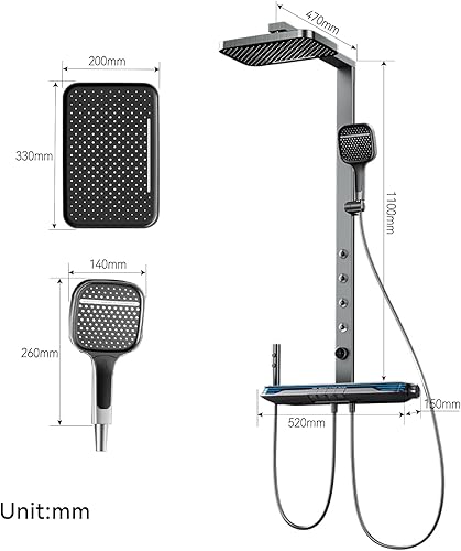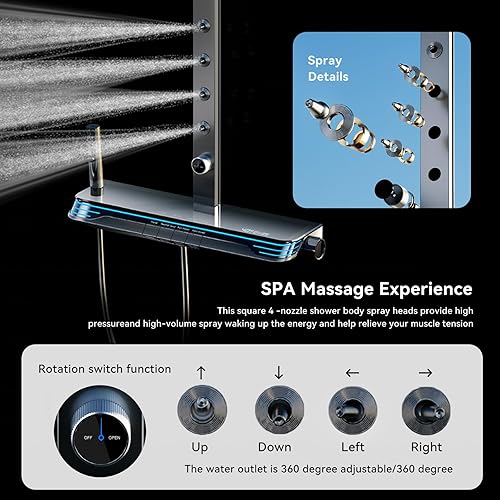 Colonna Doccia Termostatico 5 Funzioni Display Digitale LED Set Colonna Doccia Con Soffione Doccia A Pioggia, Doccetta, Bidet, Rubinetto a cascata per vasca, 4 spray per la schiena(Grigio)