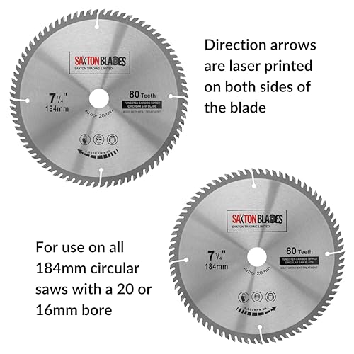 TCT18480T20B - Lama per sega circolare TCT, 184 mm x 80 denti x 20 mm foro (anello da 16 mm), compatibile con Evolution, Bosch, Makita, ecc