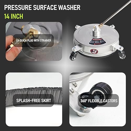 Hanured® 14' Idropulitrice per superfici, Pulitore per superfici in acciaio inox con 4 ruote, 2 prolunghe, per cemento, patio, terrazza, Connettore rapido da 1/4”, 4000 PSI