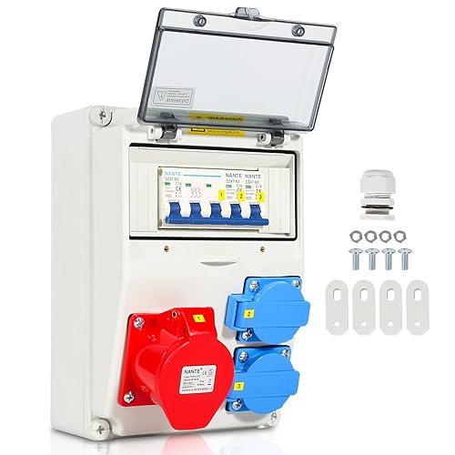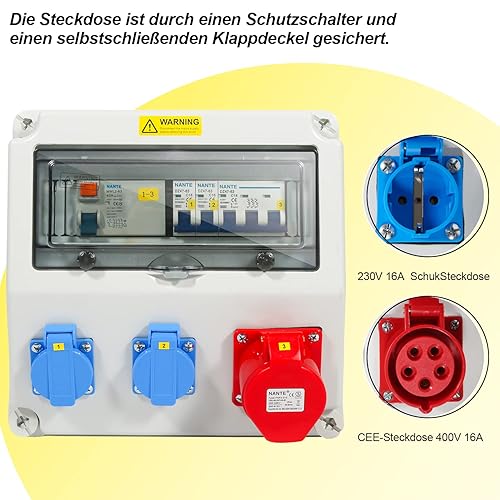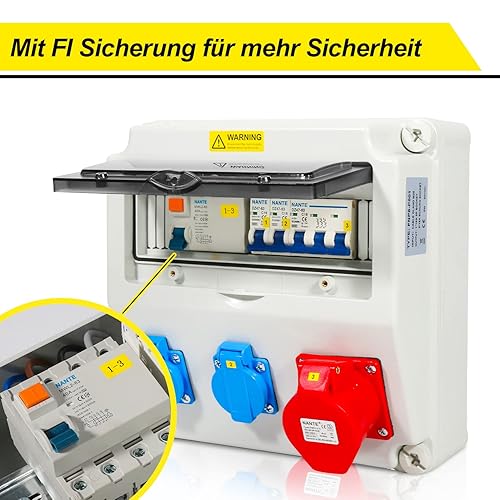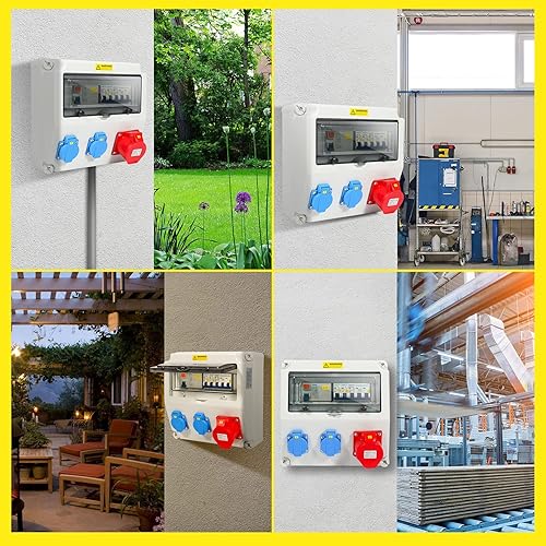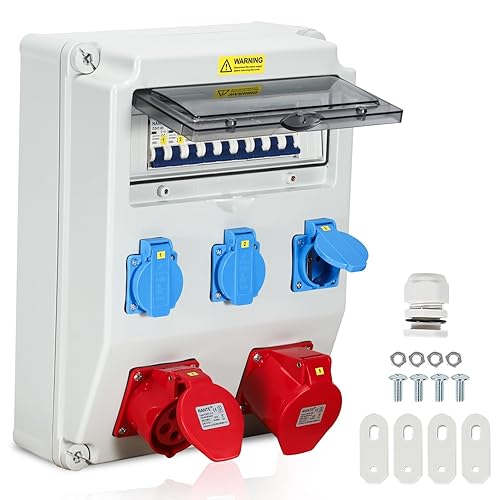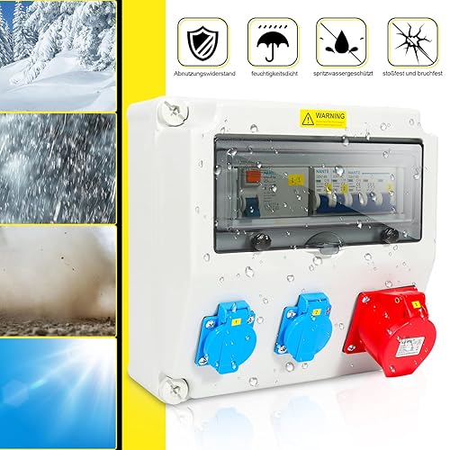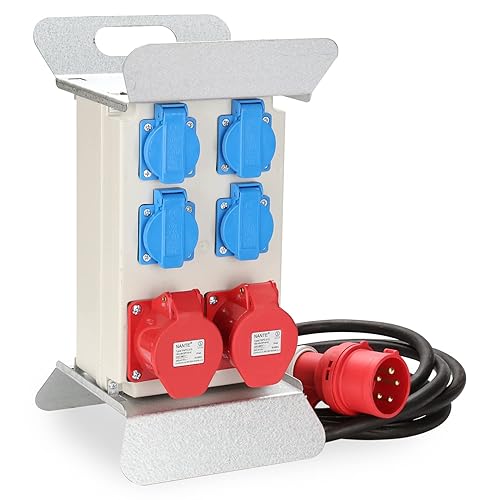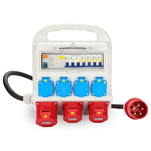 Distributore di Corrente da Costruzione 32 A, 2 x CEE 400 V/16 A, 1 x CEE 400 V/32 A, 5 Poli, 4 x 230 V (Schuko), Distribuzione dell'Alimentazione Con Presa Schuko