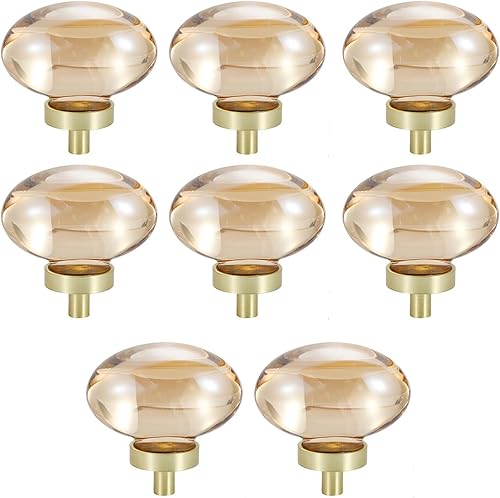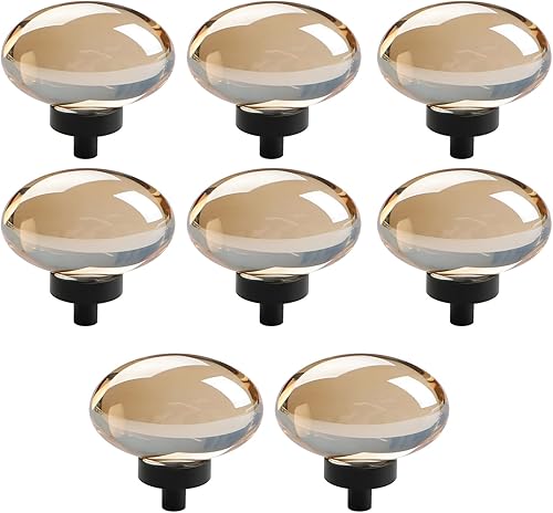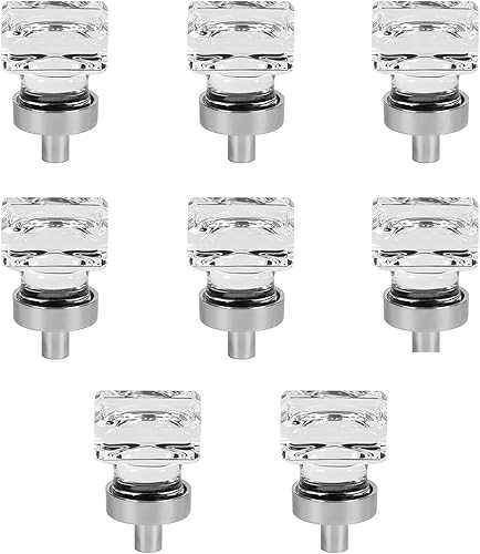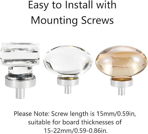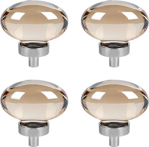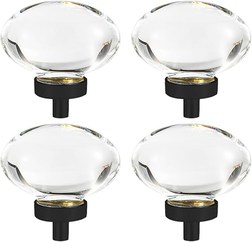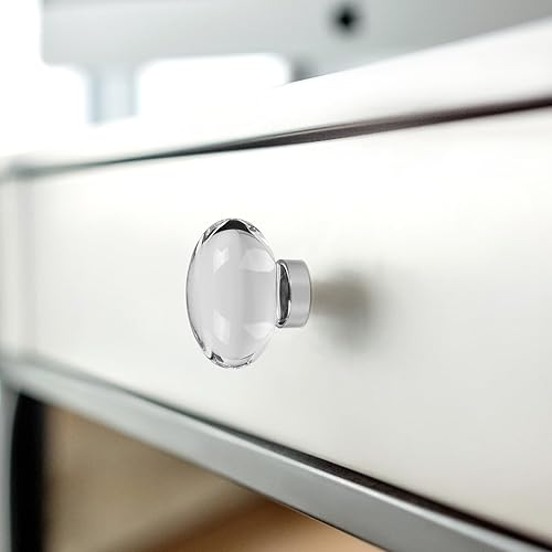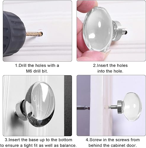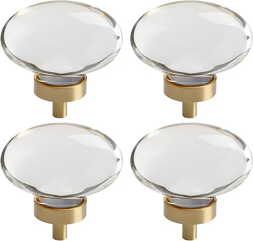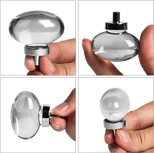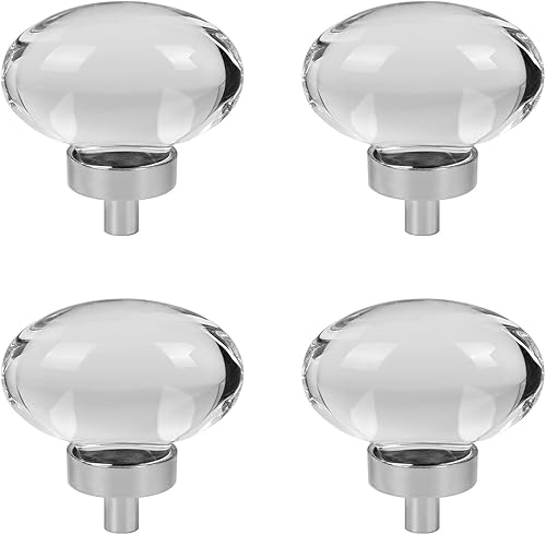4 pomelli rotondi in cristallo trasparente, 45 mm, base in lega di zinco, finitura lucida