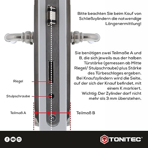 ABUS TEC440 by ToniTec - Serratura a cilindro a doppio cilindro, dimensioni 30/40 mm, con 6 chiavi, incl. ToniTec CodeCard e vite di fissaggio