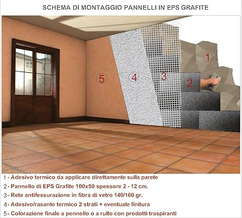 Polistirolo GRAFITE Espanso - Spessore 2 centimetri - Pannelli per Isolamento Termico (10 Pan. - 5 Mq.) Alte prestazioni Densità Maggiorata