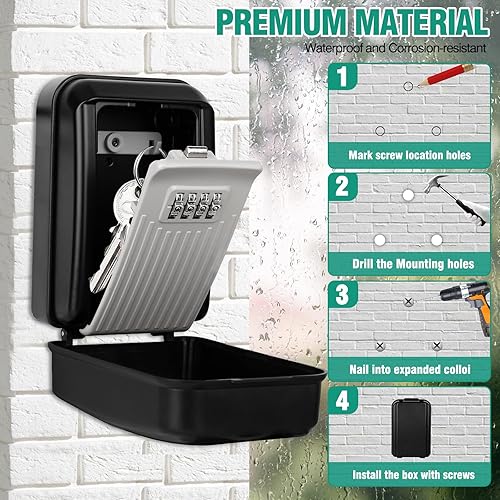 Cassetta di Sicurezza per Chiavi 4 Cifre Grande Impermeabile Emergenza Chiave Cassaforte per Chiavi Esterno da Parete Impermeabile per Casa Fabbrica Scuola Airbnb Garage Ufficio