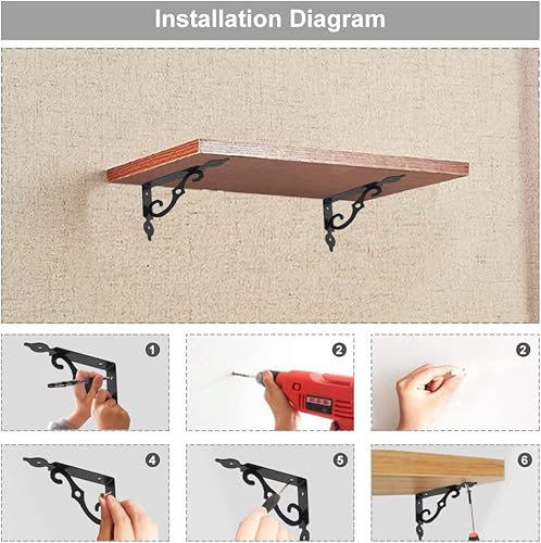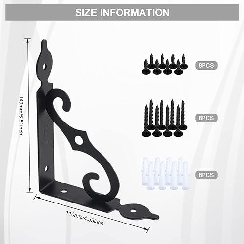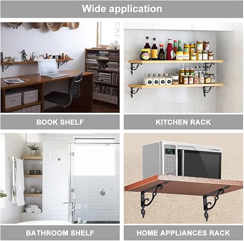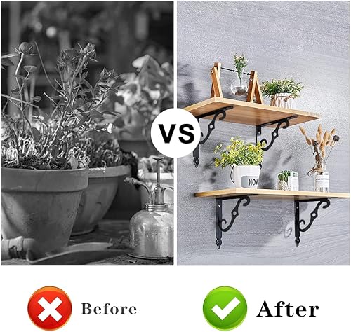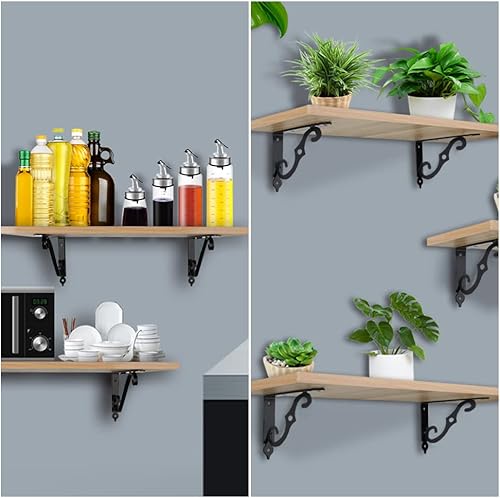 4 Pezzi Staffe per Mensole Pesanti, Staffa Mensola 14X11cm Staffe Mensole, Reggi Mensola da Muro Supporti per Mensole, con Viti per Mensole Libri Mensola Della Cucina Supporto di Vaso di Fiori, Nero