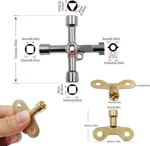 6 Pezzi Chiave a Croce Universale, Chiave Triangolare, Contatore Piazza Chiave, 4-Modi Multifunzionale Chiave, Chiave Quadrata, per Contatori Acqua ed Elettricità, Contatori Gas, Ascensori