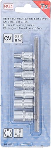 BGS 6402 - Set di chiavi a bussola, profilo E, 7 pezzi, 6,3 mm (1/4') | SW E4 - E11 | acciaio CV