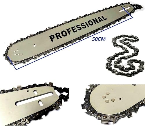Lama Barra 50 Cm 20' Pollici per Motoseghe a Scoppio 52 CC Set Ricambio Motosega con Catena 76 Maglie Barra Guida
