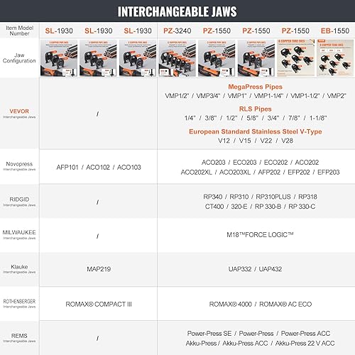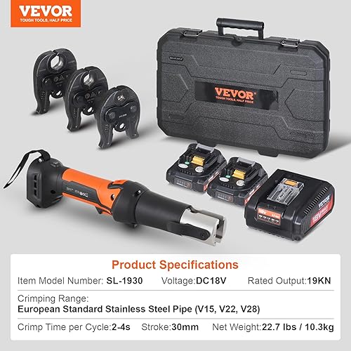 VEVOR Kit di Utensili per Pressatura e Batteria, Utensile Elettrico per Crimpatura di Tubi con Ganasce V15, V22, V28, Pressatura con 2 Batterie 20 V 2,0 Ah, Caricabatterie Rapido e Custodia Trasporto