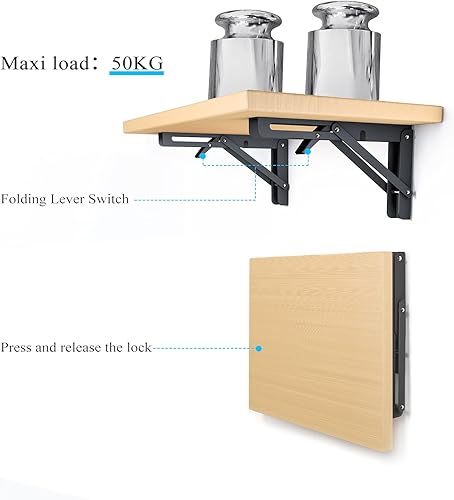 250mm Staffe Pieghevoli per Mensole, 2 Pezzi Metallo Supporti Tavolo a Parete, Mensola per Banco di Lavoro Fai da Te, Staffe Per Cucina, Camera Da Letto, Garage, Lo studio, Carico Massimo: 50 kg
