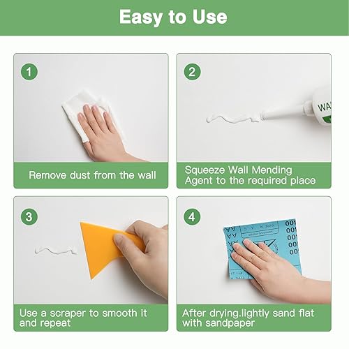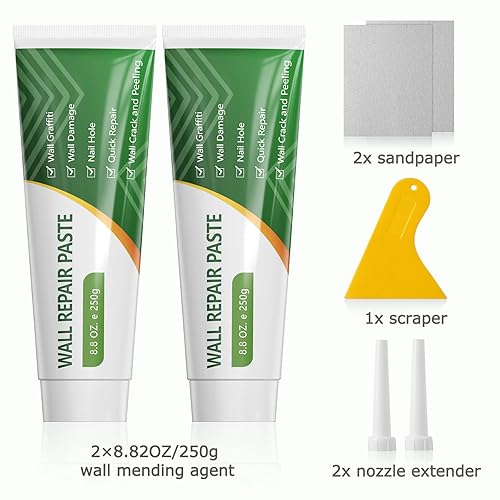 Stucco per Muro, 2 x 250g Bianco Stucco Riempitivo per Muro, Efficacemente Riparare Graffi da Parete, Fori per Unghie, Crepe, Graffiti