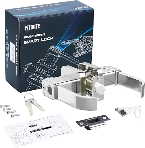 FITNATE Serratura intelligente per porta con impronte digitali, con controllo tramite app, Bluetooth, touch digitale, per casa, camera da letto, hotel, ufficio, argento