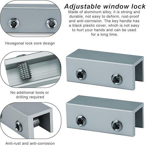 Ferma Finestra, 2 Pezzi da Serratura Finestra con Chiave, Serratura Ante Scorrevoli, Sicurezza Finestre, per Casa con Bambini, Adatta per Camera da Letto Cucina Soggiorno