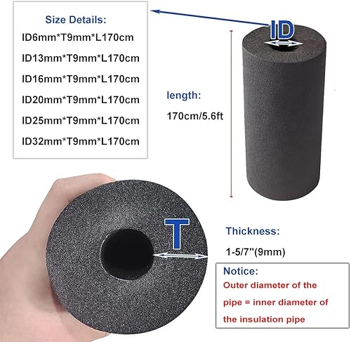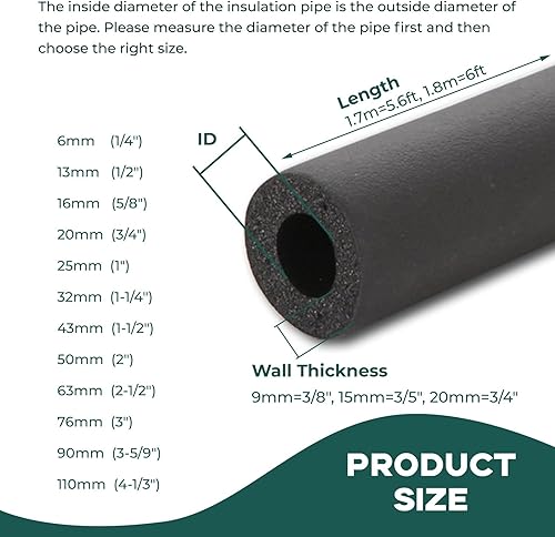 Tubo di Schiuma di Isolamento del Tubo, Guaina Isolante per Tubi Condizionatore 6 13 16 20 25 32 43 50 63 76 90 110mm Antigelo Guaina Isolante per l'inverno All'aperto Tubo di Spugna 1PCS
