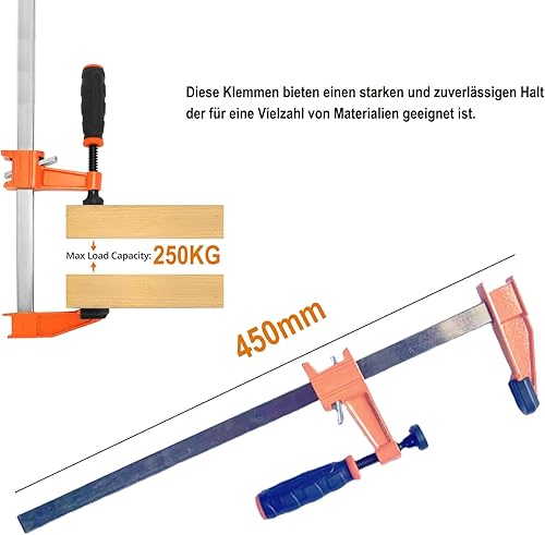 Morsetti a vite, 4 pezzi/confezione professionale, lunghezza 450 mm, larghezza 110 mm, morsetto a F in acciaio, larghezza 350 mm, profondità di serraggio 80 mm, guida in acciaio dentato