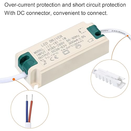 12-18W 300mA Driver LED Alimentatore, 2pz AC 85-265V Uscita 36-63V DC Maschio Connettore Costante Corrente Raddrizzatore Trasformatore Esterno Alimentazione per Lampade LED