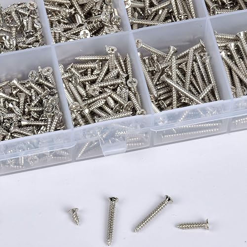 800 Pcs Viti Autofilettanti per Metallo Legno, Viti M2 Testa Svasata, Vite a Testa Piatta, Vite Autofilettante per Piatta, Kit Vite Assortimento Acciaio Inox 4-20 mm, con Scatola per Riparazioni