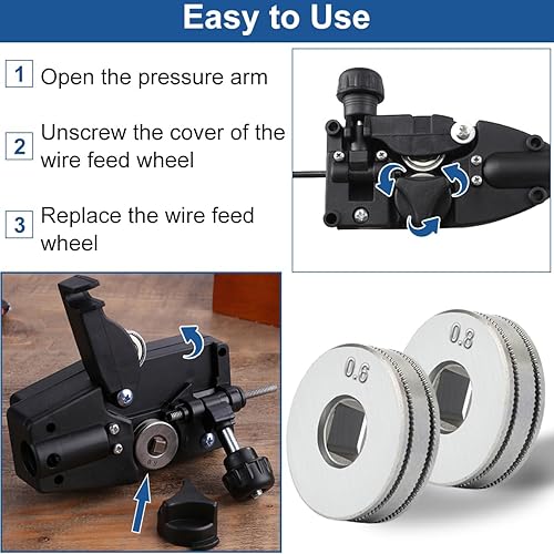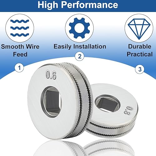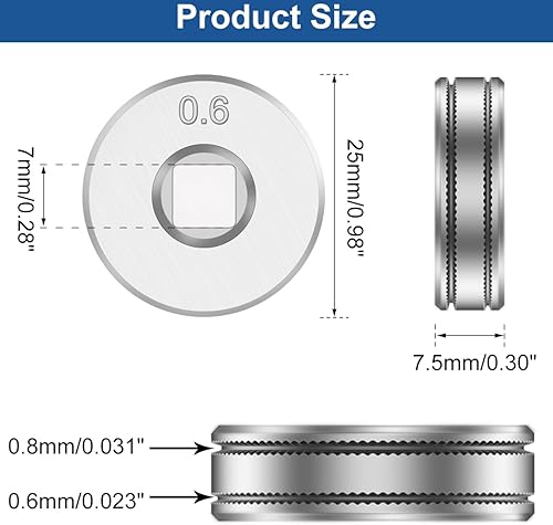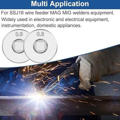 Rulli di trascinamento del filo MIG per l'alimentatore di filo animato SSJ16 MAG saldatori MIG attrezzature di guida Scanalatura zigrinata 1 rotella da 0,6 mm, 1 rotella da 0,8 mm (2 pezzi)