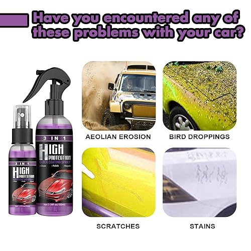 3 in 1 Ceramic Car Coating Spray High Protection Mirror Shine Car Coating Spray Nano Coating PRO Spray for Cars (2 PCS)