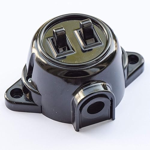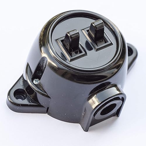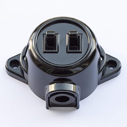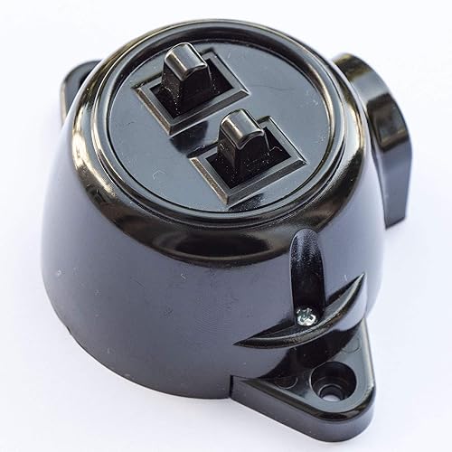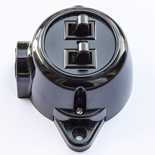 Interruttore a parete doppio supporto di serie, 10 A, 250 V, IP20, effetto bachelite rétro in plastica, colore nero