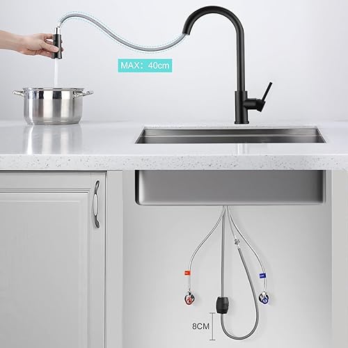 Rubinetto da cucina nero, girevole a 360°, con doccetta estraibile, ad arco alto, miscelatore da cucina con doccetta 2 modalità, miscelatore monocomando in acciaio inox 304