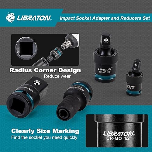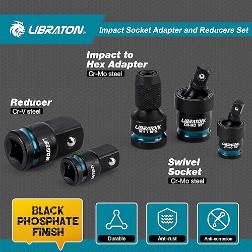 LIBRATON 11 Adattatore per Bussole a Impatto, Bussole di Riduzione, Snodo per Chiavi a Bussola, Convertitori da Impatto a 1/4' Esagono, Adattatori per Chiavi a Impatto per Riparazioni, Scatola