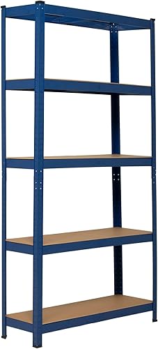 Scaffale Metallo 180 x 90 x 30 cm, a 5 Ripiani, Capacita' 1,000kg, Blu