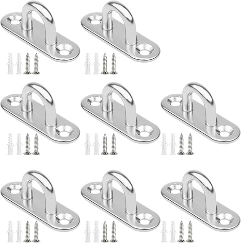 placca occhiello eye piastra, 8 pezzi M5 piastra ad occhiello in acciaio inox, Ganci di fissaggio per piastra con gancio a soffitto per oggetti appesi, tende da sole, piastre di copertura