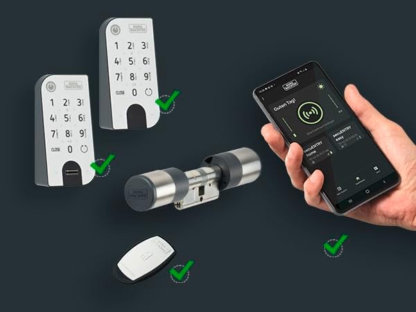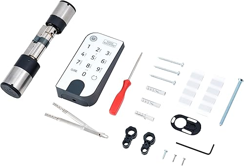 BURG-WÄCHTER Serratura Elettronica, Cilindro e Tastiera, Apertura con App, Codice PIN o Chiave con Telecomando, ENTRYeasy 7601 PIN, Nero/Acciaio, Tastiera